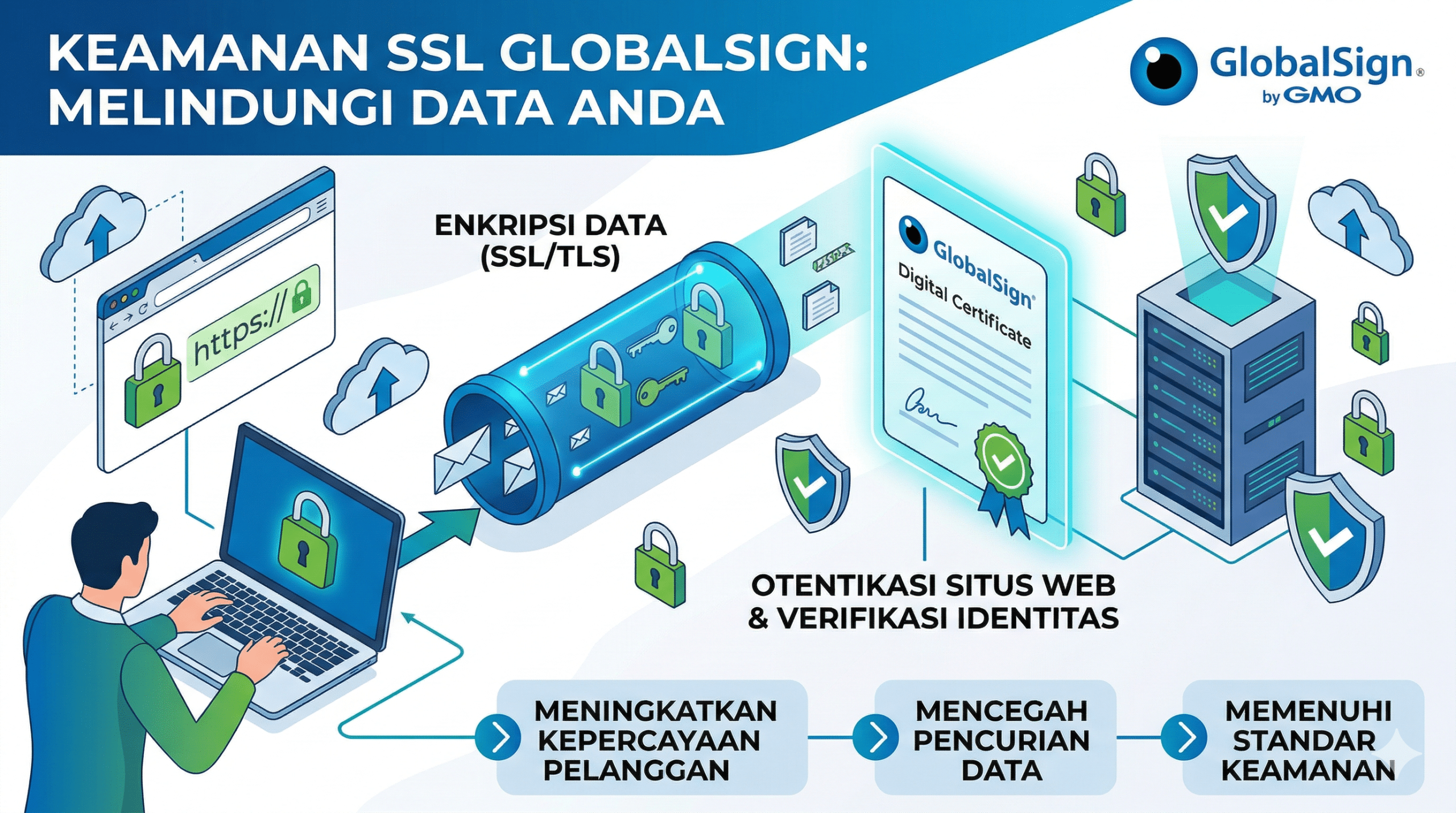SSL GlobalSign, Keamanan Website, Sertifikat SSL, Enkripsi Data, GlobalSign Indonesia, HTTPS, Perlindungan Data, CA Terpercaya
